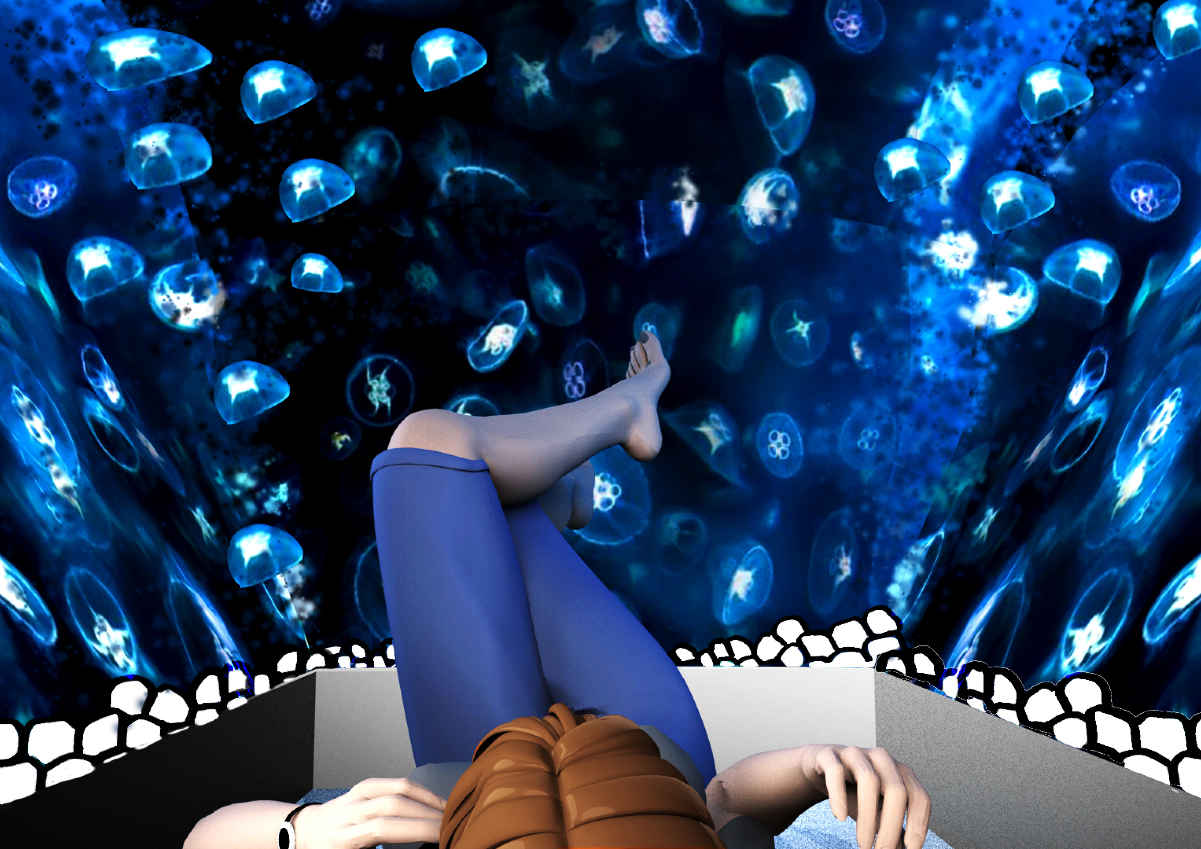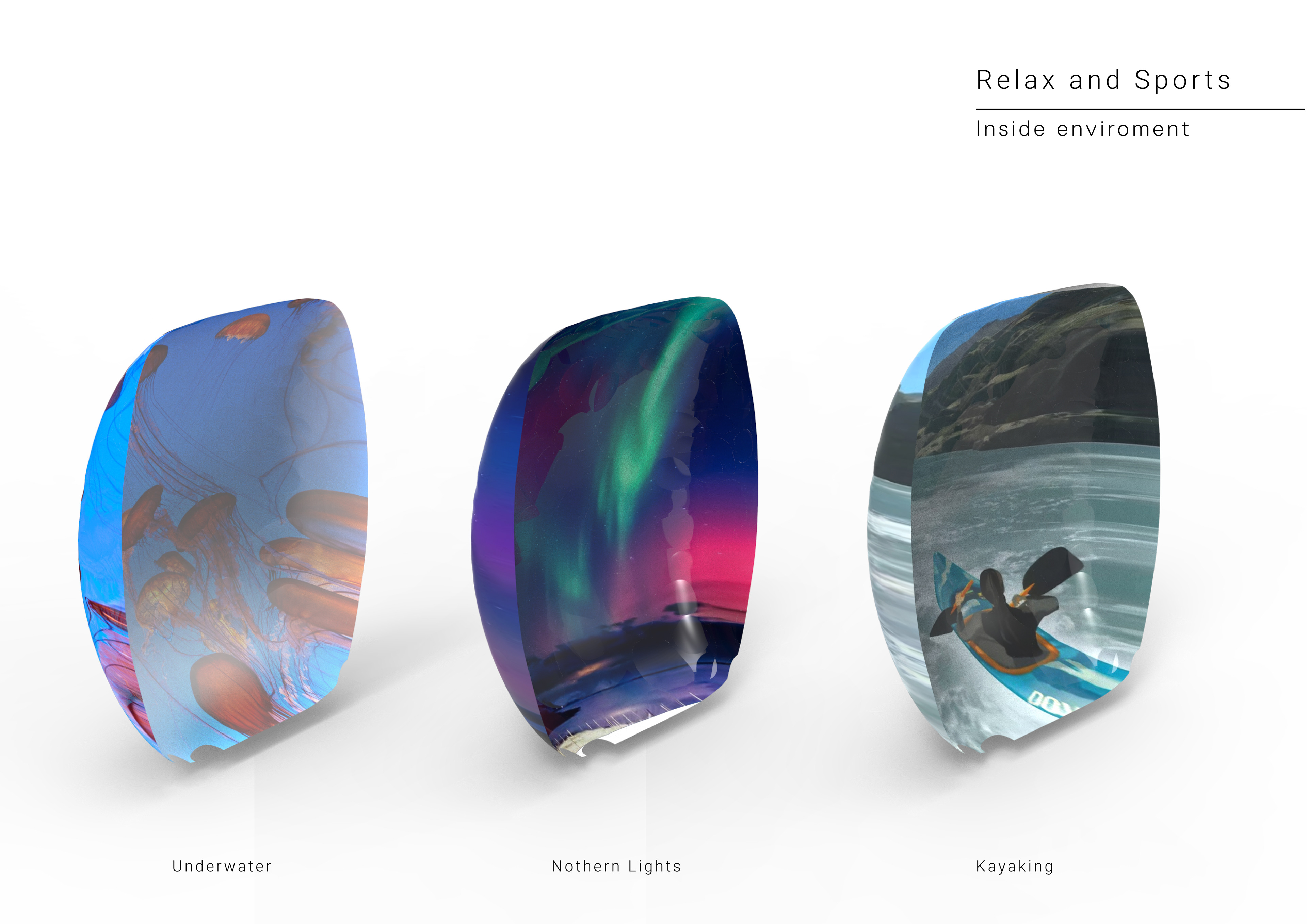 1). An inflatable bubble- with air-holes providing sufficient airflow as well as an embedded sensor and sound-insulating system. From the outside this shell provides light in the cycle of the circadian rhythm.