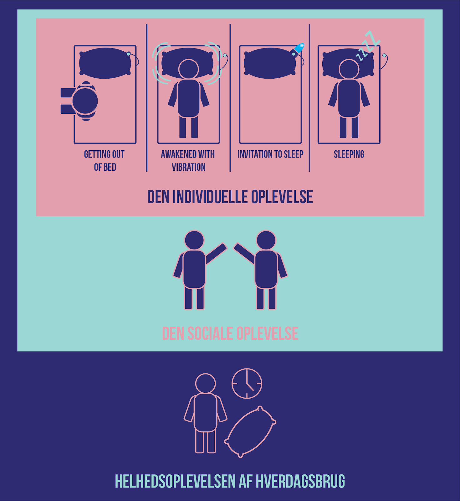 Digital Materials and Interactive Artefacts, IT University of Copenhagen, 2017. A connected social vibrating alarm in the form of a pillow. Initiated by magnet contact. Vibration stopped by other pillow also being placed on magnet urging you to also wake up. Once taken off magnet a light blinks in the other pillow indicating bedtime. Built using Tessel 2, pillows, vibrators, switch, a light. Coded with javascript. Brief was to connect everyday objects.